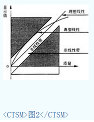 線性檢定是指加載試驗時,所加載荷與相應(yīng)示值之間的線性關(guān)系好壞的一種評估,常用天平示值與理想線性直線即從零載到*大秤量的連線之間的正或負(fù)*大偏差值表示,如圖2。