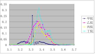 從上表可以看出,煤氣主要成分中CO、O2與背景氣N2的熱導(dǎo)系數(shù)相當(dāng),對(duì)H2的測(cè)量結(jié)果影響不大,但是CO2、CH4對(duì)H2測(cè)量影響明顯。通過(guò)理論分析及實(shí)驗(yàn)表明,如果氣體成分中含有CO2,會(huì)使H2的測(cè)量讀數(shù)偏低;如果氣體成分中含有CH4,會(huì)使H2的測(cè)量讀數(shù)偏高。因此為了得到準(zhǔn)確的H2含量,應(yīng)對(duì)H2濃度進(jìn)行CO2、CH4的濃度校正。此外由于熱導(dǎo)傳感器的基本原理是通過(guò)對(duì)氣體流動(dòng)帶走的熱量進(jìn)行換算,如果采用直接流通式的熱導(dǎo)檢測(cè)池,很難控制氣流,流量大小直接影響H2的讀數(shù),為了得到*的煤氣熱值,煤氣分析儀還必須實(shí)現(xiàn)CH4、CnHm無(wú)干擾測(cè)試。大多數(shù)紅外分析儀僅以CH4為測(cè)試對(duì)象,折合成碳?xì)浠衔锟偭坑?jì)算熱值。煤氣成份中,特別是焦?fàn)t煤氣,除甲烷外,還含有其他碳?xì)浠衔锏瘸煞帧8鶕?jù)紅外吸收原理,如圖1,乙烷等碳?xì)浠衔镌诩淄榈奶卣鞑ㄩL(zhǎng)3.3um左右有明顯吸收干擾。當(dāng)煤氣中其他碳?xì)浠衔锖枯^大時(shí),CH4的測(cè)試值會(huì)明顯偏大,導(dǎo)致熱值測(cè)試不準(zhǔn),其熱值測(cè)試值也無(wú)法保證精度。